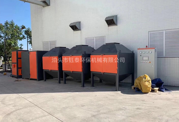 催化燃燒設備工作原理: 在化學反應過程中,利用催化劑降低燃燒溫度,加速有毒有害氣體完全氧化的方法,叫做催化燃燒法。由于催化劑的載體是由多孔材料制作的,具有較大的比表面積和合適的孔徑,當加熱到300~450℃的有機氣體通過催化層時,氧和有機氣體被吸
